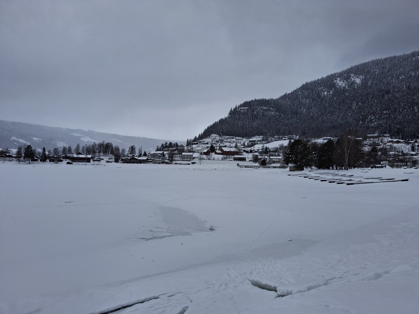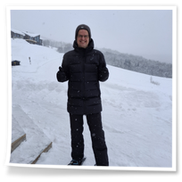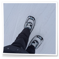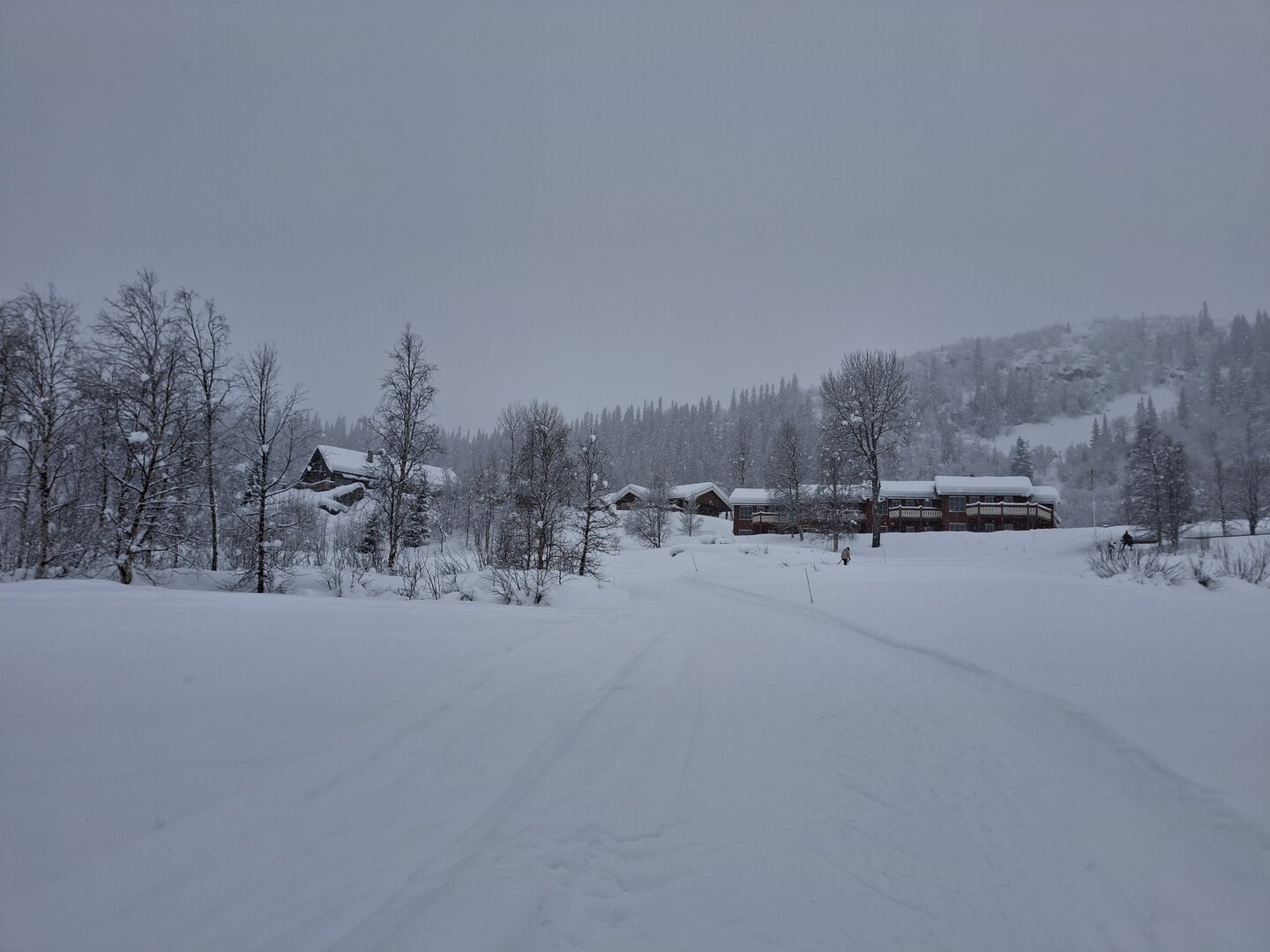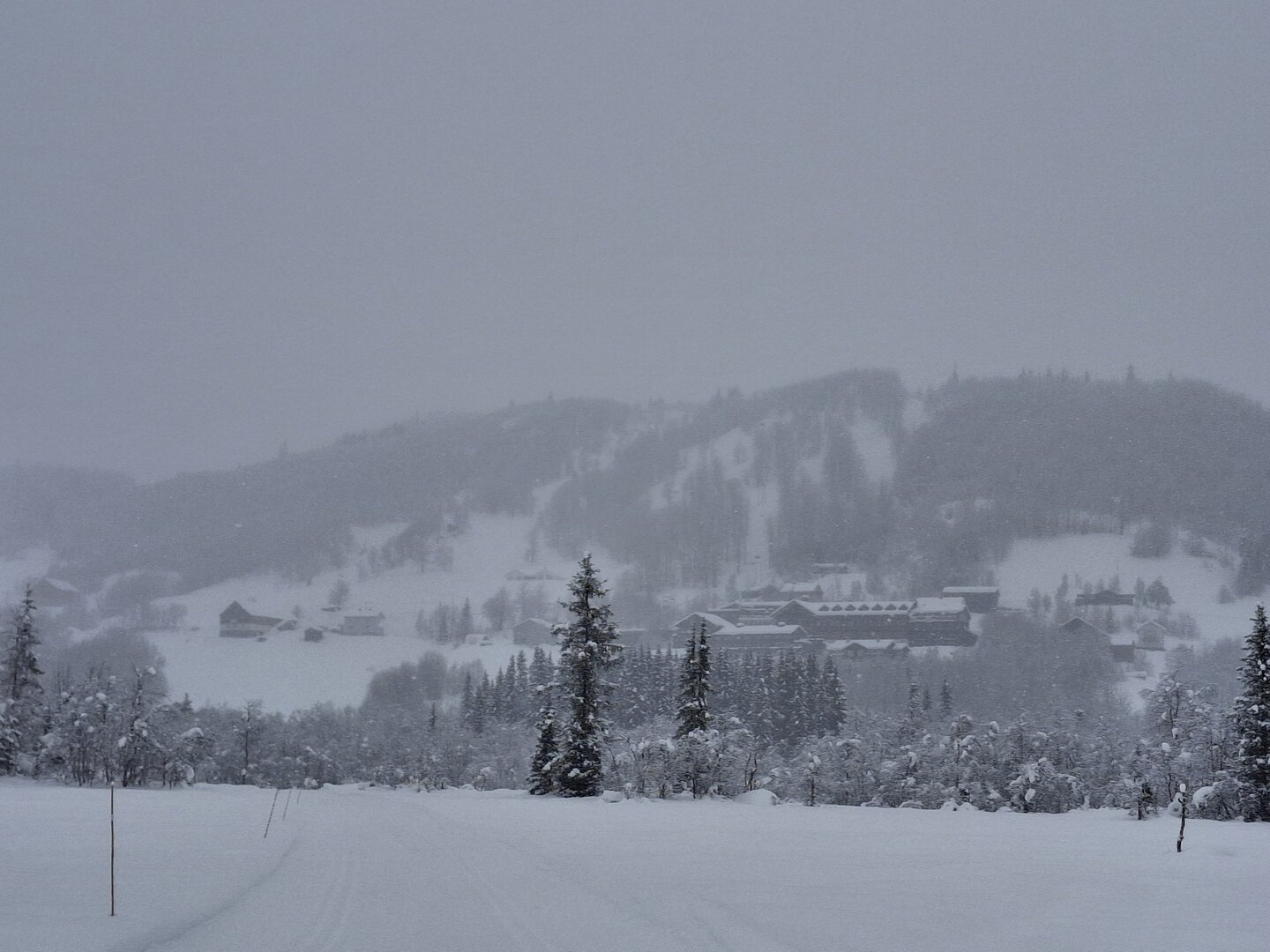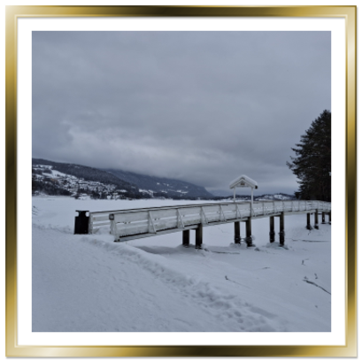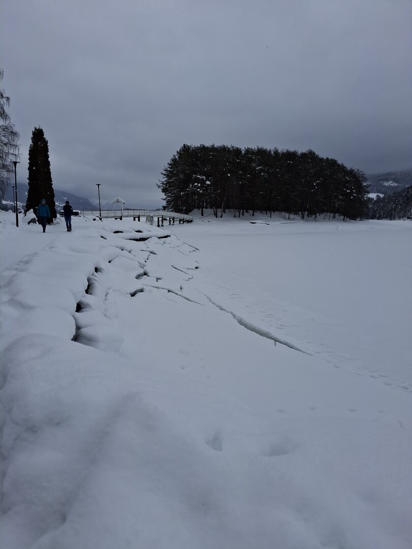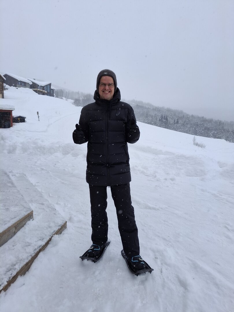 Am nächsten Morgen blickte ich aus dem Fenster: Der Himmel war bewölkt, und es schneite fröhlich vor sich hin. Über Nacht waren etwa 10 Zentimeter Neuschnee gefallen – eine traumhafte Winterkulisse. Bevor meine Reise weiterging, nutzte ich die Gelegenheit, den Ort bei einer Schneeschuhtour zu erkunden. Die frische, klare Luft und die unberührte Schneelandschaft machten diesen Spaziergang zu einem besonderen Erlebnis.