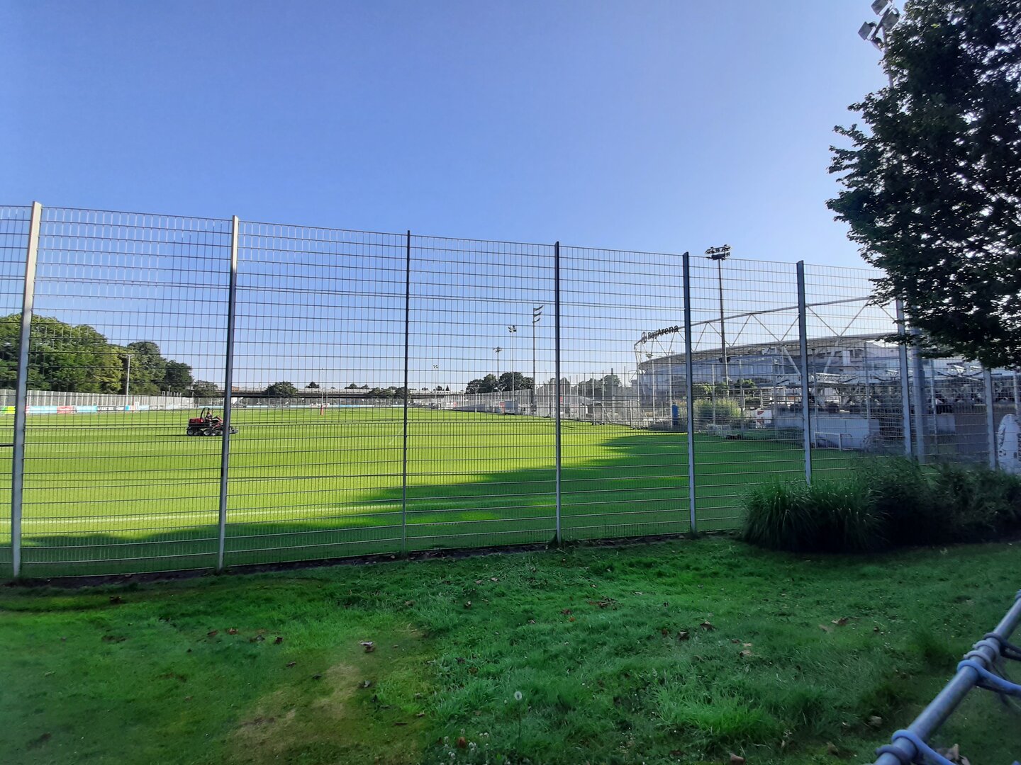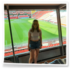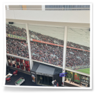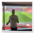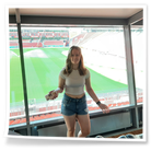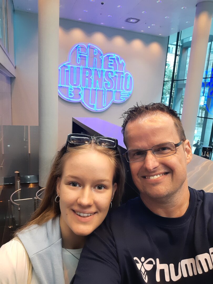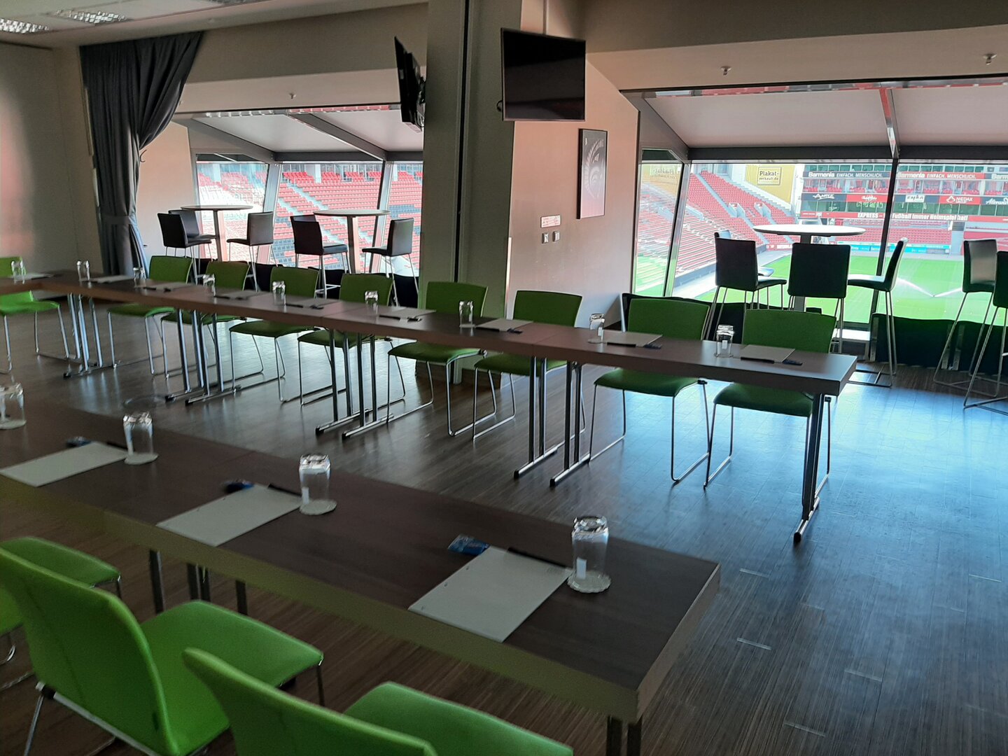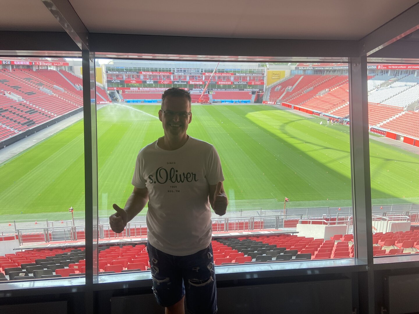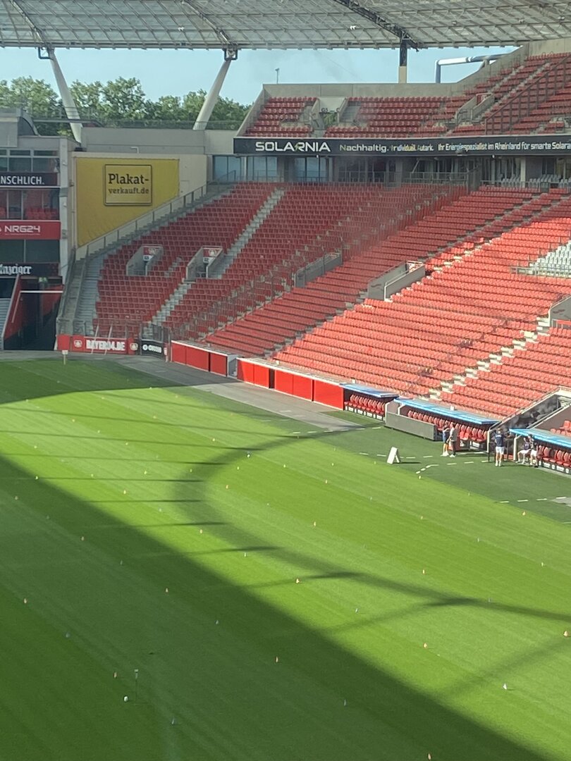 Besonders beeindruckend war der anschließende Besuch im Hotel Lindner. Dort führte uns der Hausmeister zu einem der vielen Konferenzräumen, die an Spieltagen als VIP-Raum genutzt wird. Der Blick aus diesem Raum in die Arena war ein unvergesslicher Moment, der uns beiden eine Gänsehaut bescherte.