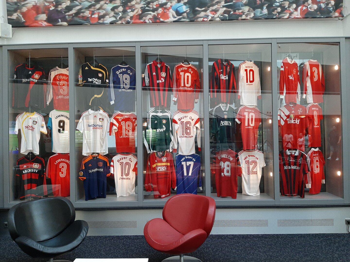 Im Foyer des Hotels gab es viel zu entdecken. Wir erfuhren spannende Details über Bayer und konnten die Trikots der letzten 30 Jahre bewundern. Auch Bilder und Geschichten berühmter Persönlichkeiten, die dem Verein verbunden sind, wurden ausgestellt. Dieser Besuch war ein besonderes Erlebnis, das uns die Leidenschaft und Geschichte des Vereins näherbrachte.