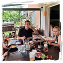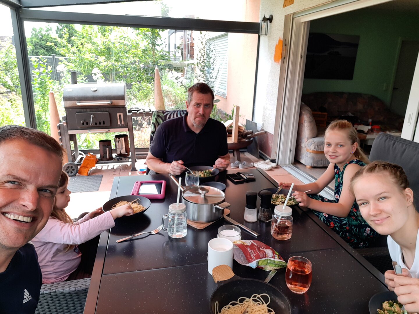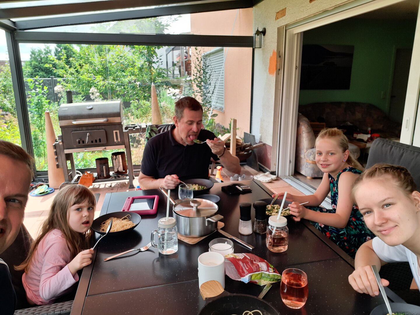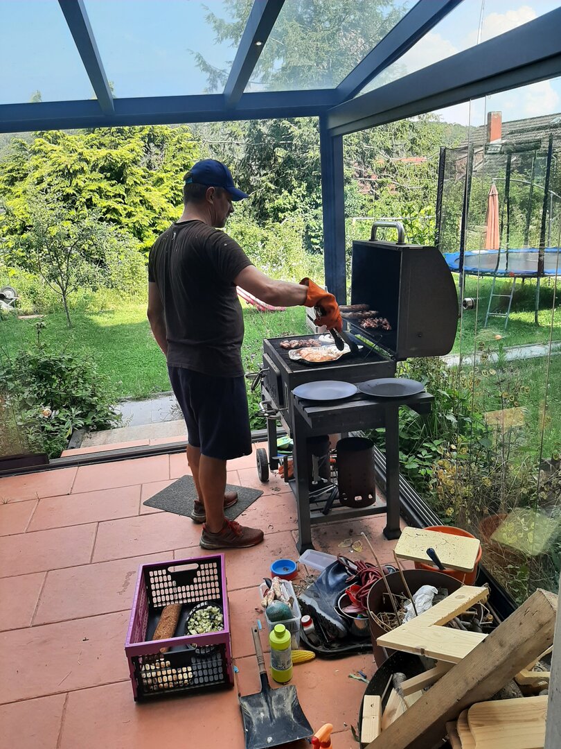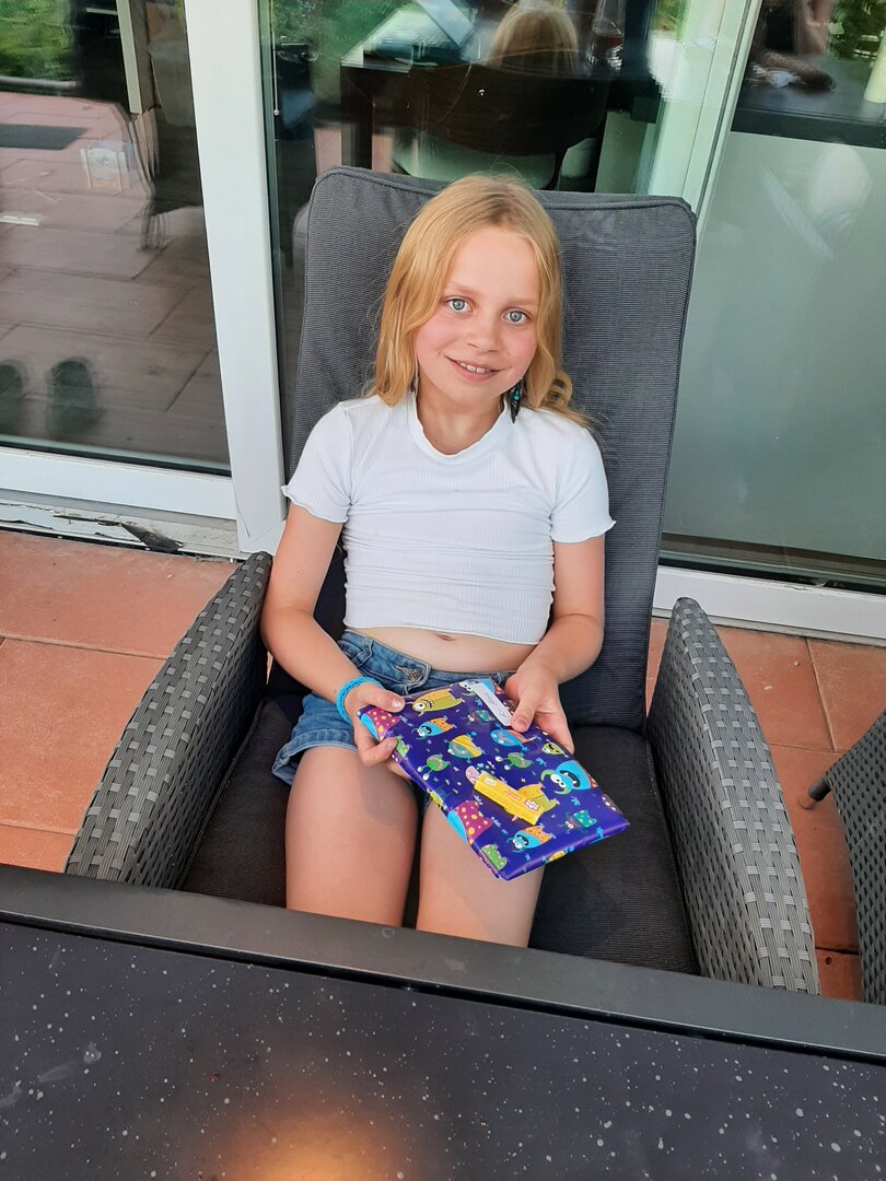 Der erste Tag unseres Urlaubs wurde mit einem gemütlichen Grillabend abgerundet, bei dem Grillmeister Daniel für das leibliche Wohl sorgte. Für Daria und Alaïa hatten die Gäste noch ein kleines Mitbringsel dabei, was rasch ausgepackt und für große Freunde sorgte. Es war ein perfekter Start in unseren Sommerurlaub, der uns noch viele schöne Erlebnisse versprach.