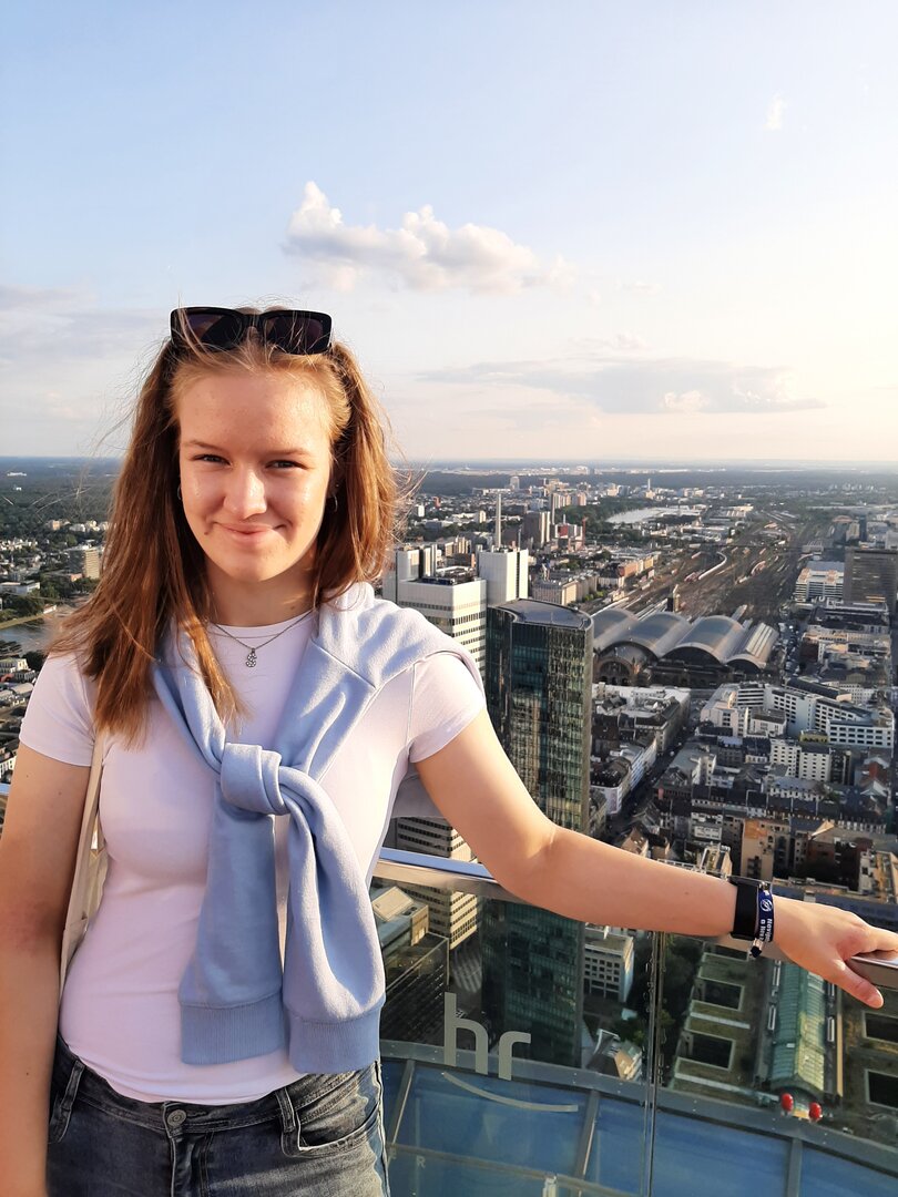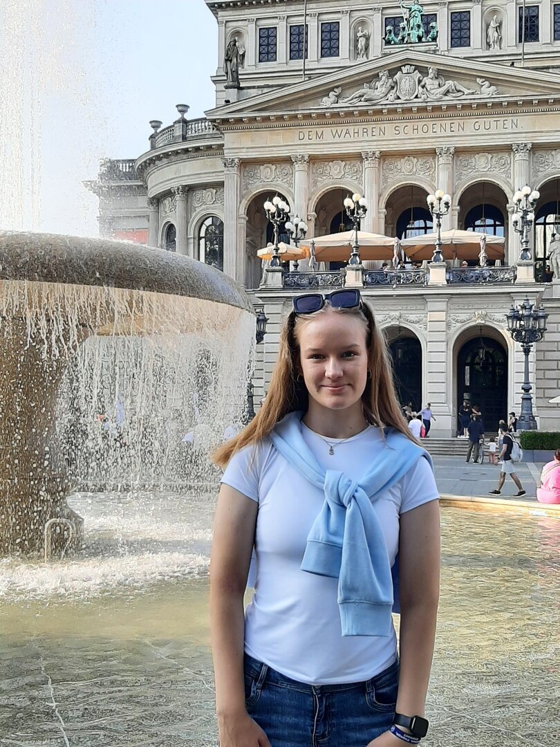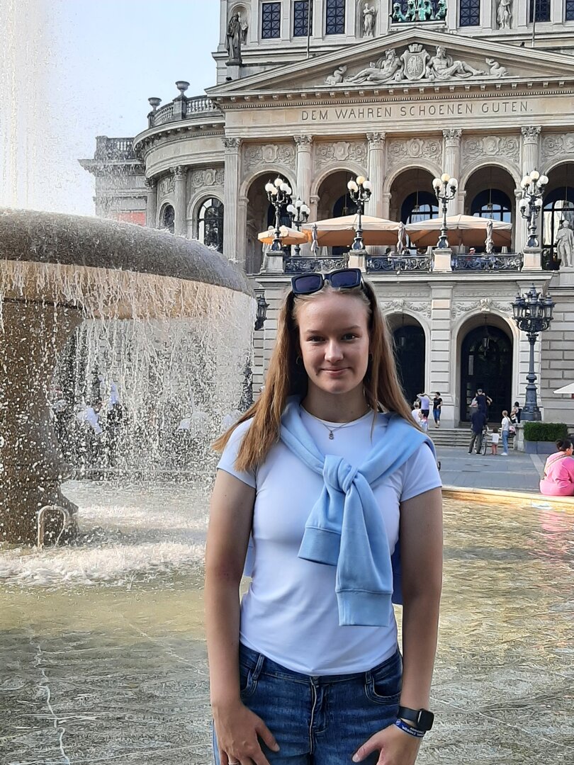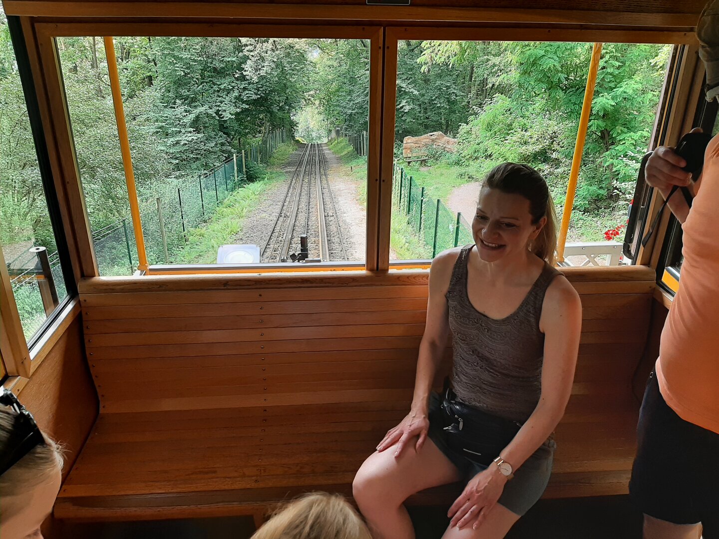 Nach einem gemütlichen Frühstück machten wir uns mit dem Bulli auf den Weg in die etwa 15 Kilometer entfernte Landeshauptstadt Hessens, Wiesbaden. Unser Ziel: die Nerobergbahn.Oben auf dem Neroberg angekommen, machten wir Halt am Tempel, wo wunderschöne Gruppenfotos entstanden. Danach ging es weiter zur Bergbahn, auf die wir nur wenige Minuten warten mussten. Die Fahrt selbst war kurz, dauerte weniger als drei Minuten, aber bot eine tolle Aussicht auf die Umgebung.