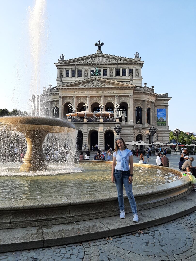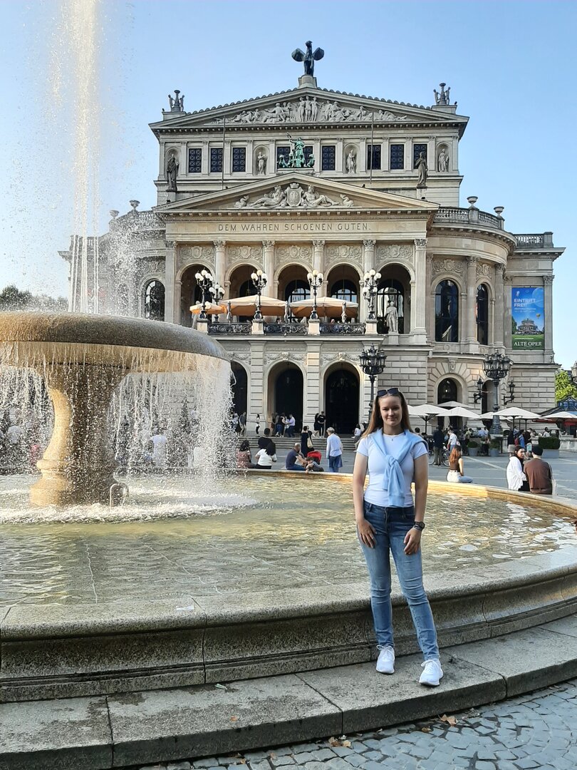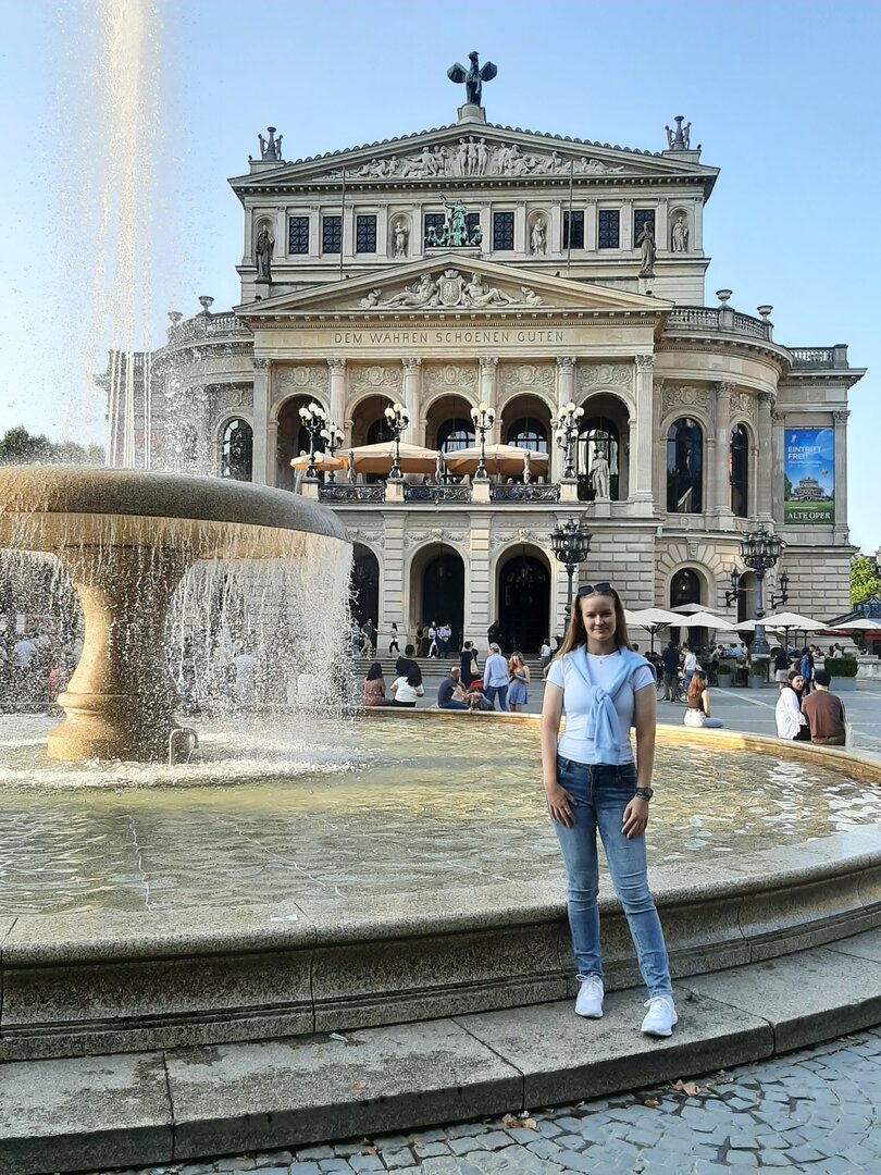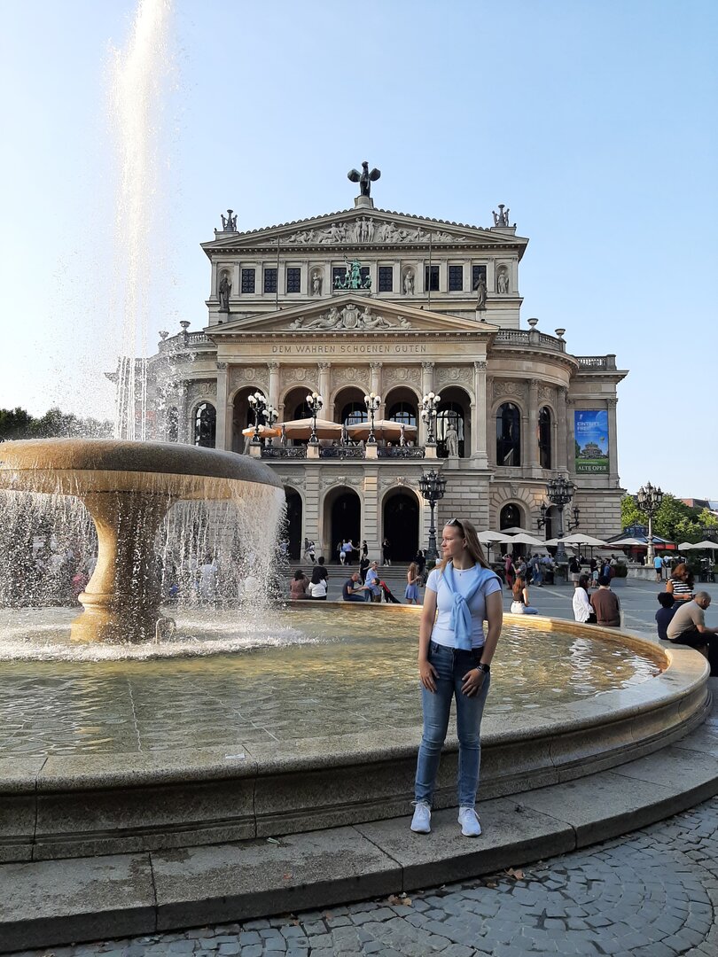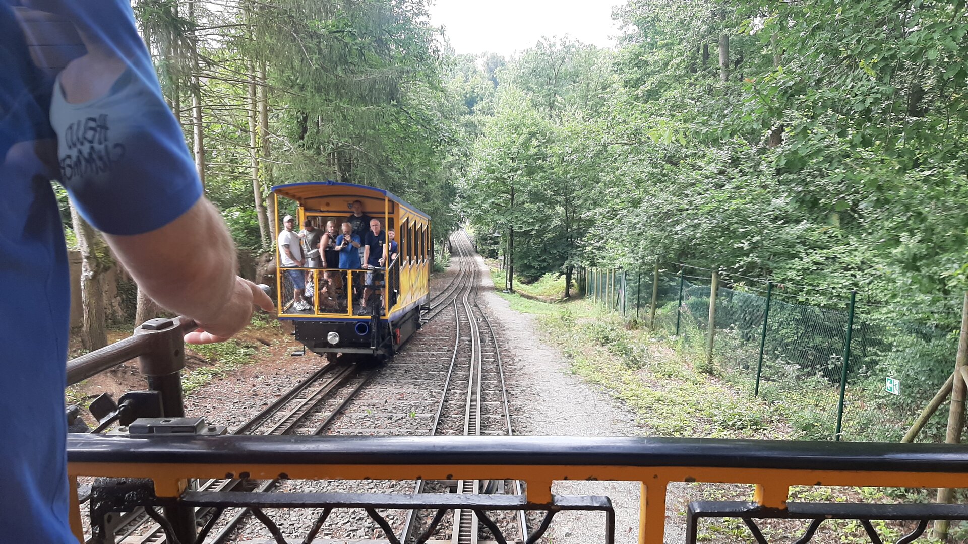 Nach einem gemütlichen Frühstück machten wir uns mit dem Bulli auf den Weg in die etwa 15 Kilometer entfernte Landeshauptstadt Hessens, Wiesbaden. Unser Ziel: die Nerobergbahn.Oben auf dem Neroberg angekommen, machten wir Halt am Tempel, wo wunderschöne Gruppenfotos entstanden. Danach ging es weiter zur Bergbahn, auf die wir nur wenige Minuten warten mussten. Die Fahrt selbst war kurz, dauerte weniger als drei Minuten, aber bot eine tolle Aussicht auf die Umgebung.