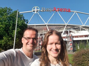 Auf dem Weg legten wir eine Frühstückspause in Werne ein, um uns für die weitere Fahrt zu stärken. Kurz vor halb neun erreichten wir die BayArena, die Heimat des neuen Deutschen Meisters. Gleich gegenüber der BayArena die Ostermann-Arena. Die Spielstätte der Bayer-Elfen, mit Ihrem Star Viola Leuchter, aus der Handball Bundesliga der Frauen.Um 12 Uhr kamen wir schließlich in Born an, wo wir herzlich von Familie Krüger empfangen wurden. Nach einem kurzen Zwischenstopp bei Lidl, um die wichtigsten Dinge einzukaufen, ließen wir den Nachmittag entspannt ausklingen.